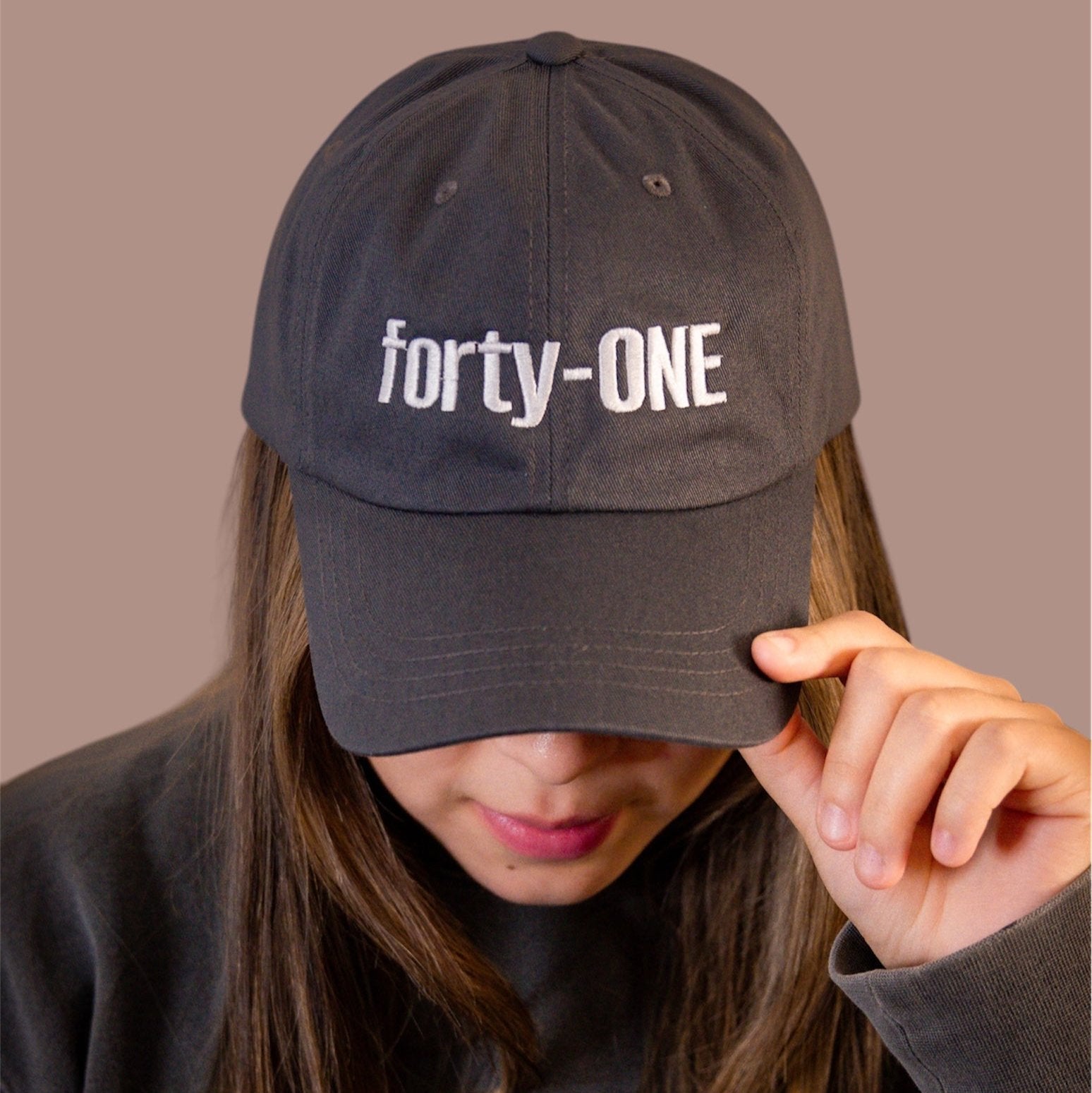 This hat features the word "forty" in lowercase and "ONE" in uppercase, symbolizing a transformative shift.